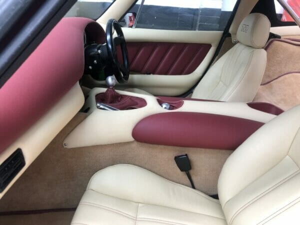 Full interior re trim in Andrew Muirhead fine scottish leather, front screen removed (at your risk but we try not to damage it) Large choice of colour and stitching available. (Roof, carpet and steering wheel extra)