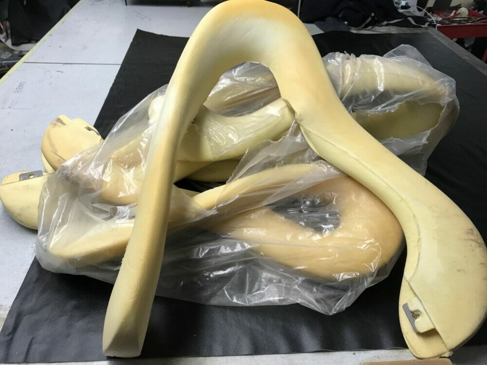 Seat assembled with new components ready for trimming.